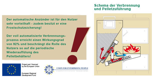 - Die vom Nutzer eingestellte Temperatur des Kessels durch ein eingschaltetes Gebläse und eine Förderschnecke ständig aufrecht zu erhalten